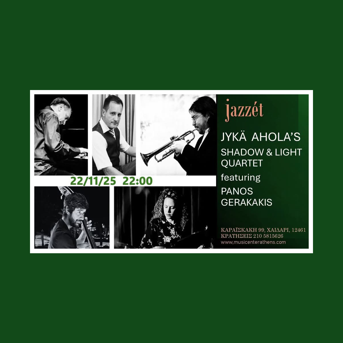 Once again Finnish trumpet player Jykä Ahola pays Athens a visit and will perform in various locations!